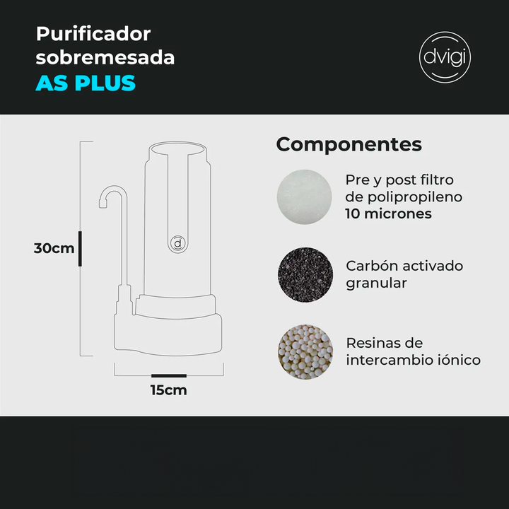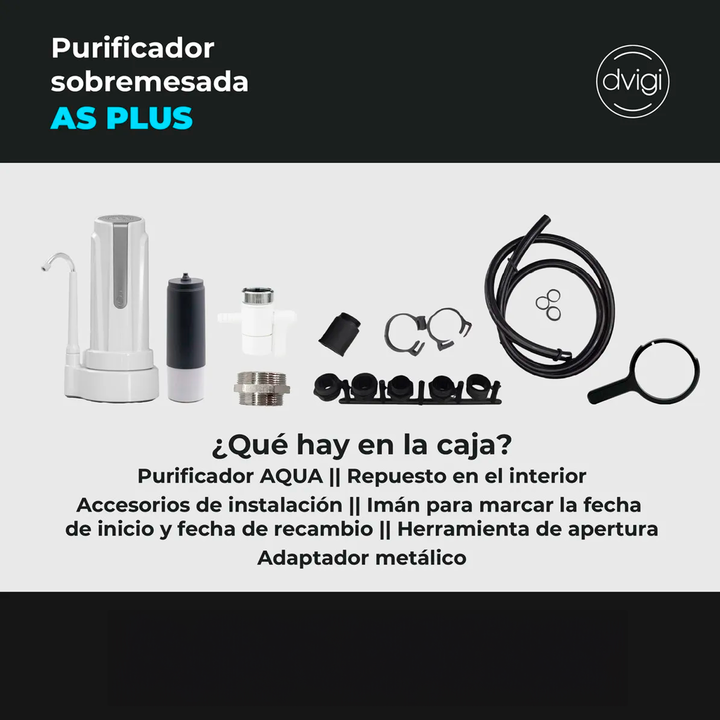 DVIGI PURIFICADOR AQUA AS PLUS DVIGI SKU: AQUASPNP25 NEGRO/PLATA SKU: AQUASPNO25 NEGRO/ORO Purificador de Agua AS PLUS DVIGI: El Más Completo, Seguro y Elegante Protegé tu salud con el purificador más avanzado de DVIGI. Diseñado para ofrecerte agua pura, segura y libre de arsénico, un metal pesado a...