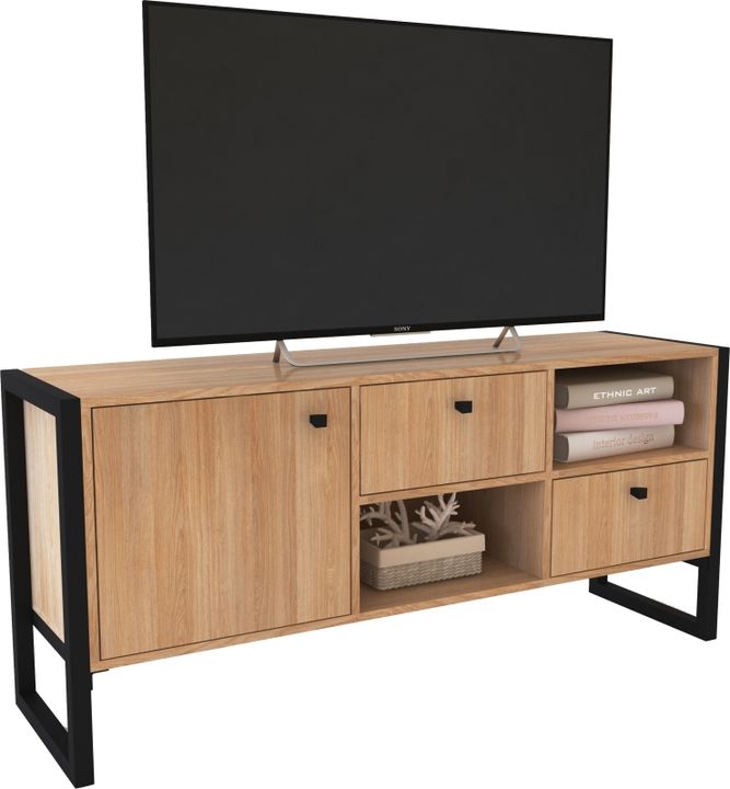 RACK PARA TV STEEL DST03 DST03RN ROBLE NEBRASKA NATURAL DELOS -Rack para TV hasta 50 -1 puerta + 2 cajones -Estructura de hierro negro mate de 1,32 -Cuadro de 3 x 3 cm -Melamina de 15 mm -Guias telescopicas -Medidas (AnxAlxProf) 127 x 60 x 37 cm -Color ROBLE NEBRASKA NATURAL -Modelo STEEL DST03 -Gar...