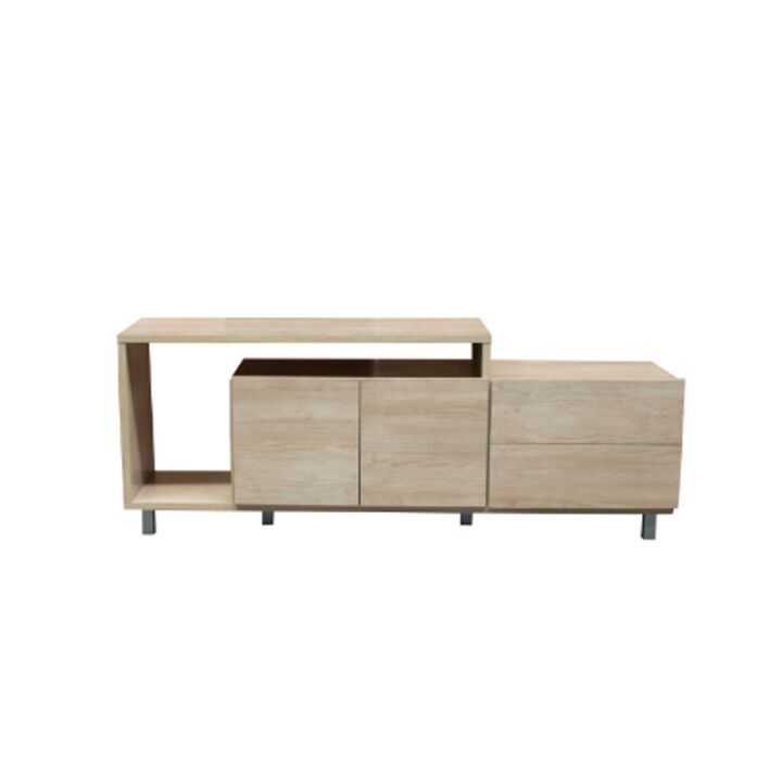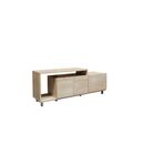 Rack para tv de melamina. Dos puertas con estante interno. Dos cajones con correderas metálicas. Patas de pvc. Color Savanna. Medidas: Ancho: 1.78 mts. Alto: 0.67 mts. Profundidad: 0.45 mts. Producto seleccionado para venta y entrega “EN CAJA”.