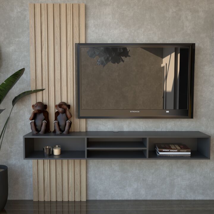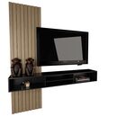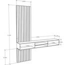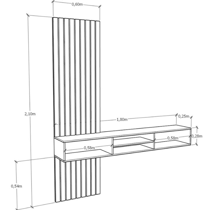 Rack para tv, de colgar, de melamina bicolor de alta resistencia. Revestimiento varillado. Cuatro espacios de guardado. Soportes para pared de ladrillo. Sistema Minifix. Medidas: Ancho: 1.80 mts. Alto: 2.10 mts. Profundidad: 0.25 mts. Producto seleccionado para venta y entrega “EN CAJA”.