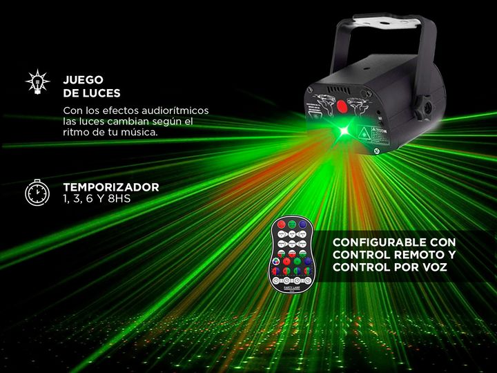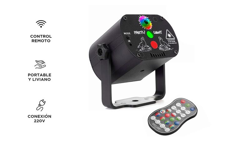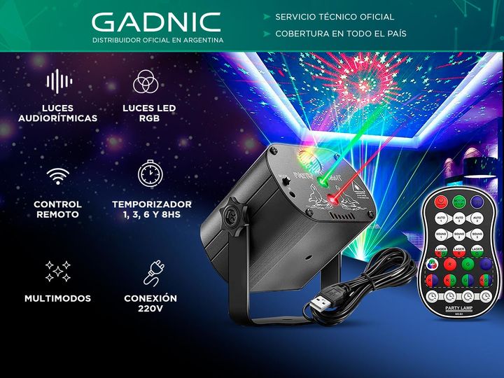 ¡Nuevo Cabezal Laser Gadnic RGB! Es ideal para fiestas, bares, fiestas en el hogar, celebraciones, escenarios y shows. Es ideal para sumar iluminación profesional a tus animaciones, esta luz láser es un esencial en toda fiesta Incluye control remoto y multimodos: El cabezal mas completo por su canti...