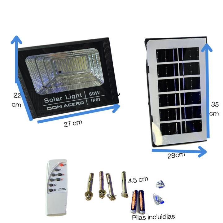 Reflector Led 60w + Panel Solar Exterior Con Control Remoto