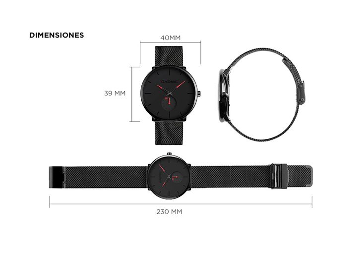 ¡Gadnic presenta su nueva línea de relojes minimalistas de alta calidad! Este clásico y sencillo reloj de pulsera para será ideal para cualquier ocasión. Su diseño compacto y minimalista lo hacen el más vendido del mercado. La correa mallada regulable de acero inoxidable logra una adaptación a cualq...