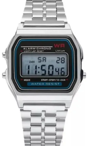Reloj VINTAGE Digital Cronmetro AlarmaRELOJ VINTAGE Acero WRMovimiento quartz JapanFormato 1224 hs.LuzCronmetroAlarmaCaja ABS base acero atornilladaMalla acero autorregulableCaja 335 mm.