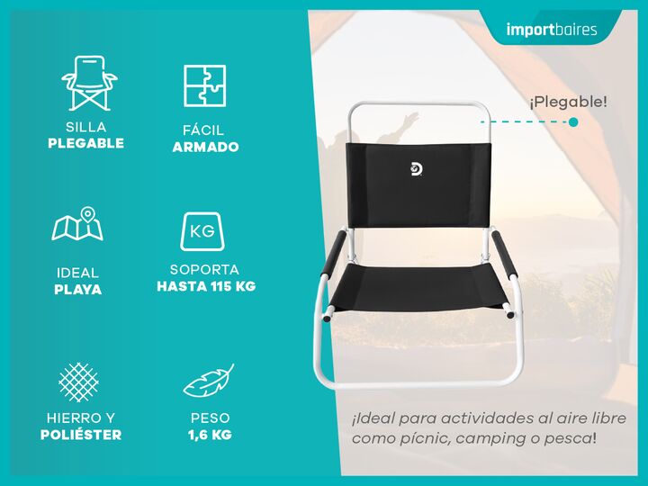 REPOSERA DISCOVERY BAJA PLEGABLE ESTRUCTURA METALICA Diseño bajo, perfecto para playa o jardín Estructura de caño metalica Lona textil azul reforzada de alta resistencia Apoya brazos con cobertura antideslizante Se pliega en segundos, fácil de transportar Ocupa muy poco espacio en auto o bolso playe...