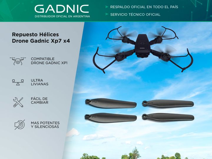 ¡Combo repuestos originales Gadnic, 4 hélices ultra silenciosas! El set incluye dos pares de hélices especialmente diseñadas para tu Drone Gadnic Xp7 Suma potencia y minimiza los ruidos de tu drone con el combo de hélices ultra livianas. Especificaciones Peso: 0.5gr Compatible: Drone Gadnic Xp7 Dime...
