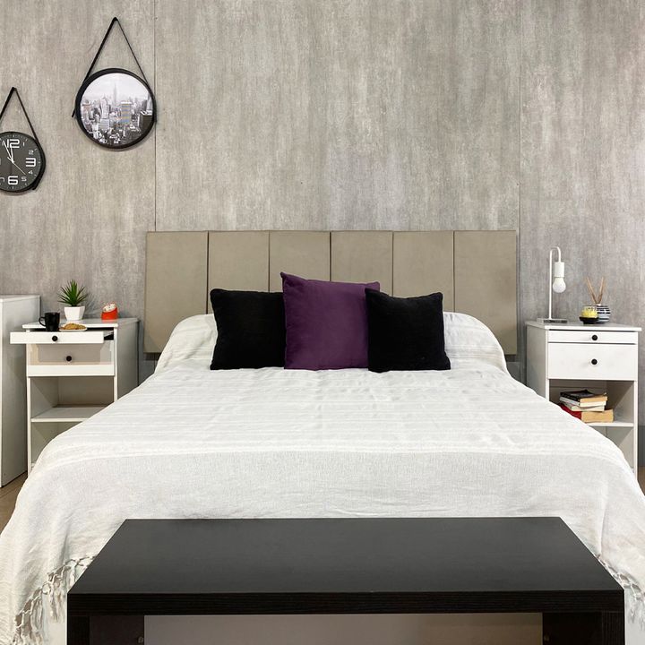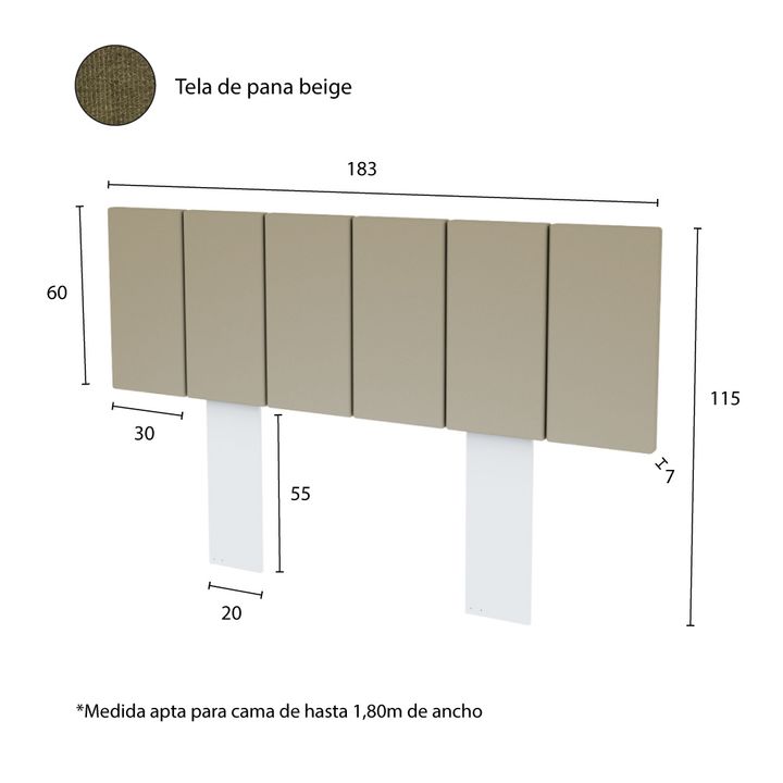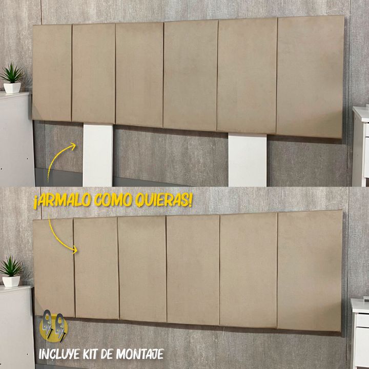 CENTRO ESTANT RESPALDO DE CAMA GOYA BEIGE SKU: RC18B Respaldo de cama moderno recubierto en tela de pana y relleno de goma espuma. Incluye kit para montar o bases de melamina para poder colocar la cama. Combina bien con cualquier estilo de dormitorio, disponible en pana beige o gris. CARACTERISTICAS...