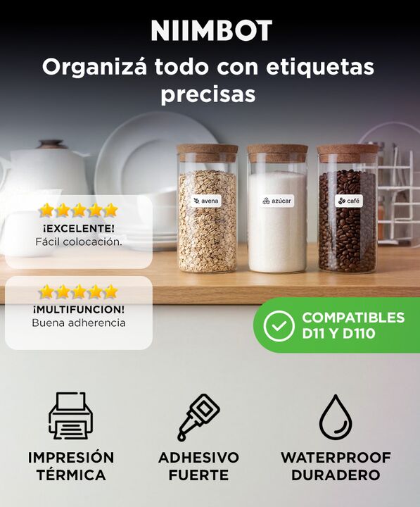 Etiquetado Rapido Y Practico Las etiquetas termicas niimbot estan diseñadas para impresoras portatiles compatibles con modelos D11 y D110. Permiten crear etiquetas claras y organizadas para identificar objetos productos o documentos. Su tecnologia termica elimina necesidad de tinta o toner. Esto sim...