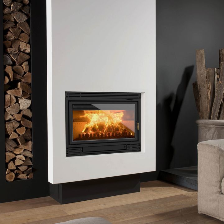 Parrilla retenedora de troncos - Esta pieza es estetica y protectora ya que evita que cuando se abra la puerta del calefactor los troncos caigan encima de la persona y tambien protege al vidrio del contacto directo con la lena - Sistema de doble combustion que permite controlar ingreso de aire a cam...