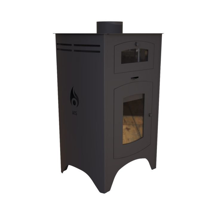 Mayor emision calrica por conveccin y radiacin . Horno con calor envolvente . Caracteristicas . Piso enlozado . Mayor superficie vidriada . Laterales curvos . Doble combustion . Salida de humo 6 . Medidas . Alto 969 cm . Ancho 61 cm . Profundidad 45.3 cm . Ambiente hasta 120 m . Potencia 150000 kcal...