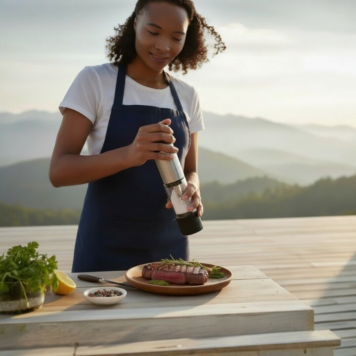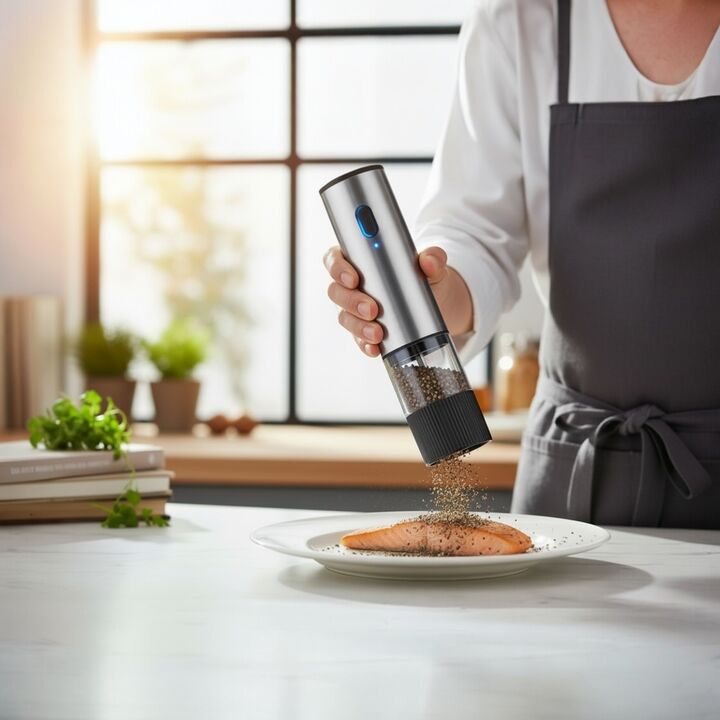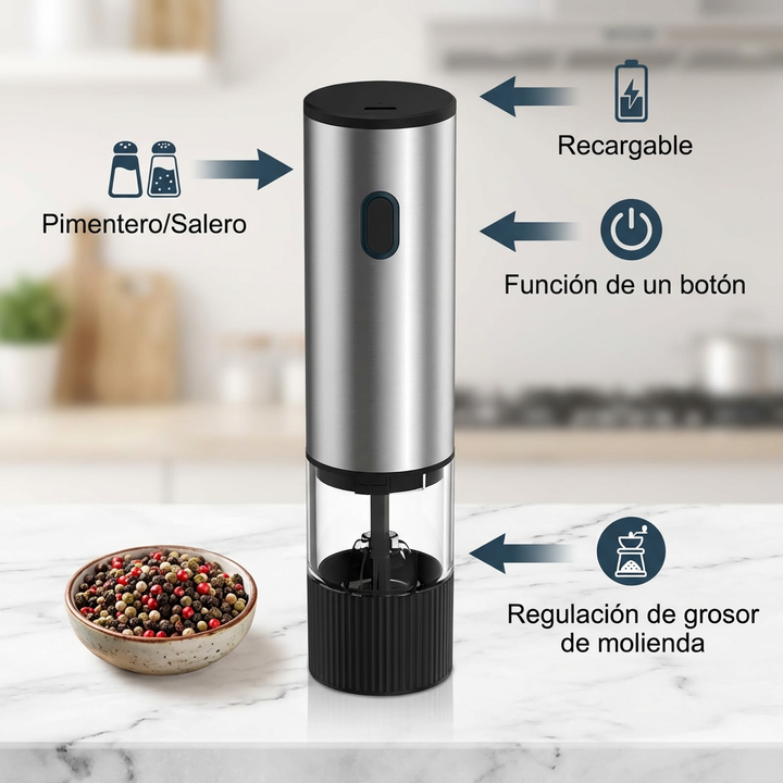 El salero y pimentero eléctrico recargable klasse facilita el molido con un uso simple y recargable.