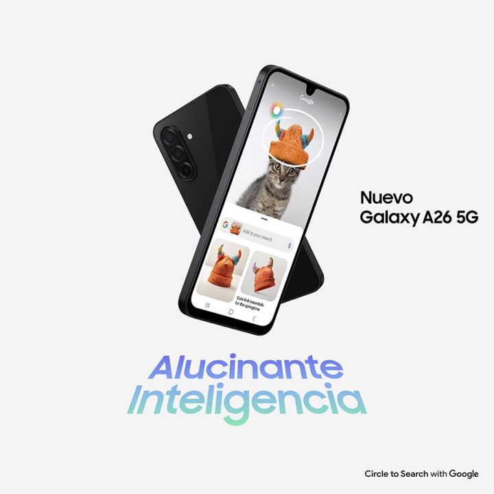 SAMSUNG A26 SM-SM-A266M 5G256GB NG -Pantalla FHD+ 169,1 mm (rectángulo completo de 6,7) / 159,8 mm (esquinas redondeadas de 6,3), 1080 x 2340, Super AMOLED -Tasa de refresco 120 Hz -Procesador Octa Core 2.4GHz,2GHz -Sistema operativo Android -Memoria RAM 8GB -Almacenamiento interno 256GB -Soporte de...