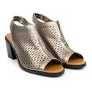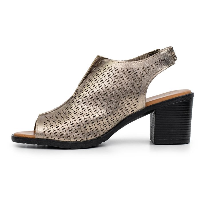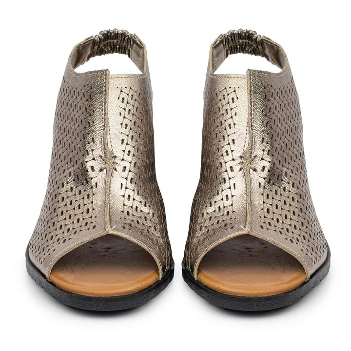 Elegancia y comodidad se encuentran en este diseño confeccionado en 100% cuero, con base de goma antideslizante la sandalia Arka te brinda seguridad en cada paso. Su elástico trasero asegura un calce fácil y práctico, mientras que el taco suma altura y estilo para un look de vestir fresco y sofistic...