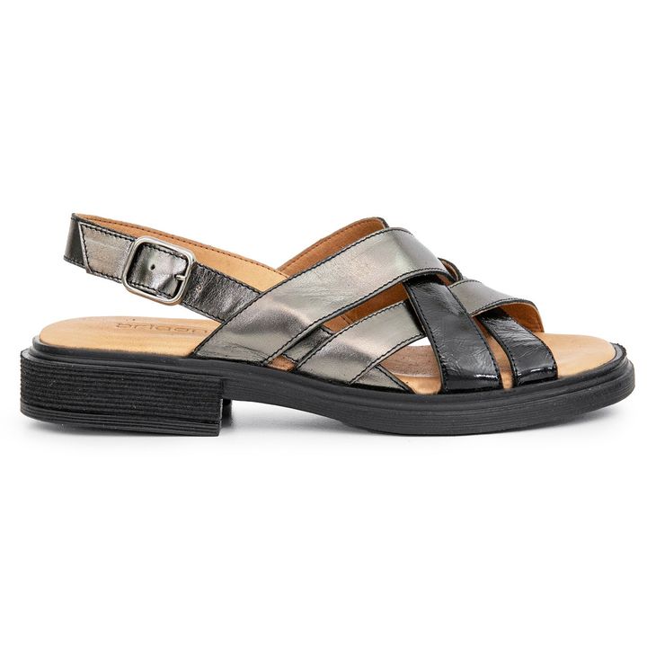 La Sandalia Eva es la combinación perfecta de comodidad y estilo clásico. Confeccionada en 100% cuero, base de goma antideslizante y plantilla acolchada, ofrece un andar firme y confortable. Su diseño chatito y casual la hace ideal para quienes buscan un toque juvenil sin perder la elegancia. - Mate...