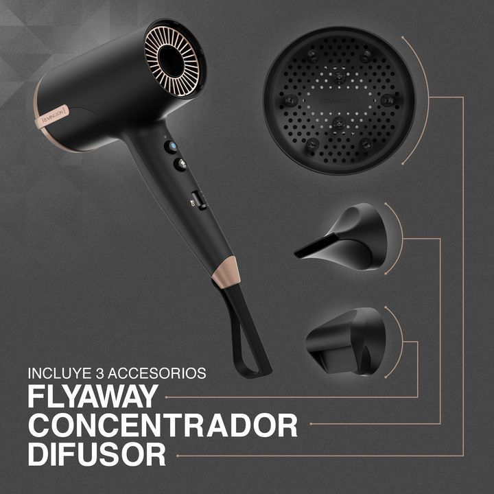REMINGTON SECADOR DE PELO FLEXISTYLE SKU: D31A-220A El secador de cabello Remington cuenta con el innovador accesorio FLYAWAY, que ayuda a controlar los cabellos sueltos, baby hair, para un estilo mucho más definido, proporcionando 90% menos cabellos sueltos. Gracias a su tecnología de acondicionami...