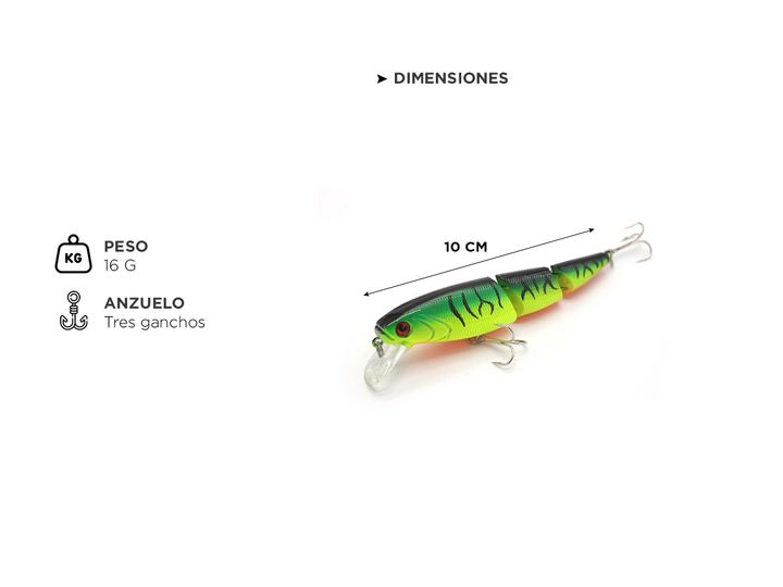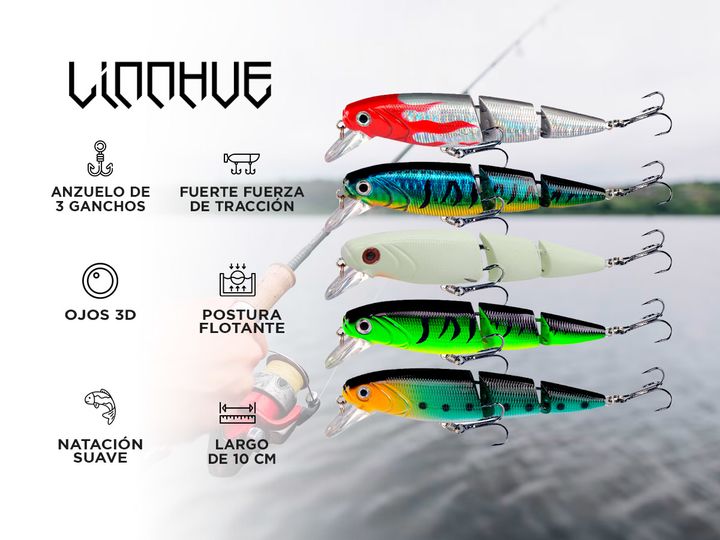 ¡Innovador Señuelo de pesca Linnhue! Amantes de la pesca, les presentamos un producto que les encantará: el señuelo de pesca Linnhue. Este cebo artificial ha sido diseñado para imitar a la perfección los movimientos de un pez, atrayendo así a los peces depredadores y aumentando las posibilidades de ...