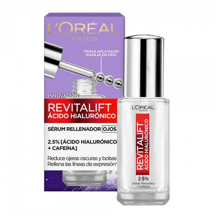 LOreal Paris Revitalift Ácido Hialurónico Serum Rellenador Ojos Formulado con Ácido Hialurónico y Cafeína, rellena líneas de expresión ubicadas en la zona del contorno de ojos, reduce la apariencia de las bolsas y ojeras. Conocé el nuevo Serum para Ojos de Revitalift Ácido Hialurónico, ideal para lu...