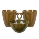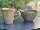 Set compuesto por 3 piezas en total : - 2 Tazas Jarro Mug Lineas y - 1 Bowl Compotera Rombos - Facetados Envejecidos Bowl: -Altura: 8cm -Diámetro superior: 13 cm -Diámetro inferior: 7 cm -Capacidad: 580 ml -Material: Cerámica Tazas: - Diámetro superior: 9cm - Diámetro inferior: 5.5cm - Alto: 10cm - ...