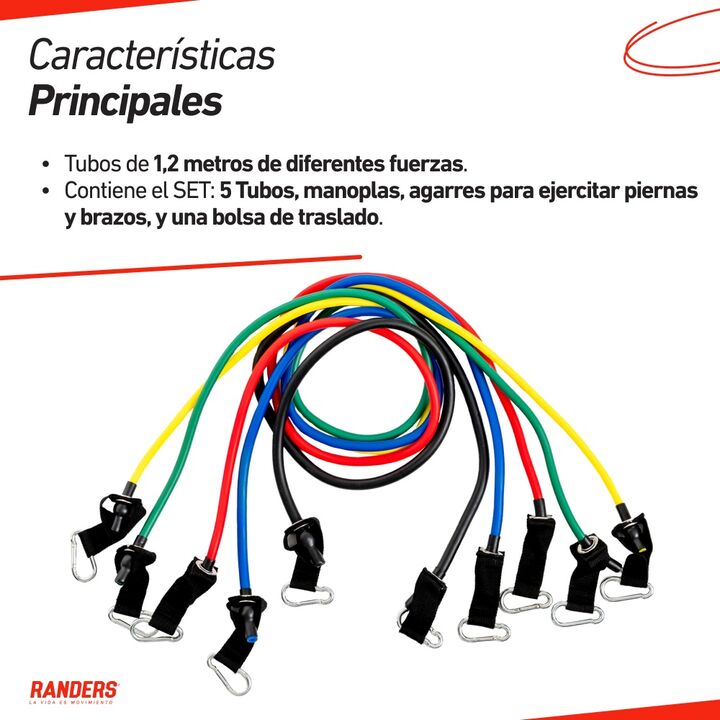 ¡Potenciá tu entrenamiento con el Set de Tubos de Resistencia ARG-035! Este completo set incluye cinco tubos de diferentes resistencias, fabricados en TPR de alta calidad, perfectos para entrenar todo tu cuerpo. Cada tubo tiene una longitud de 1200 mm, y varía en grosor para ofrecerte un rango de re...
