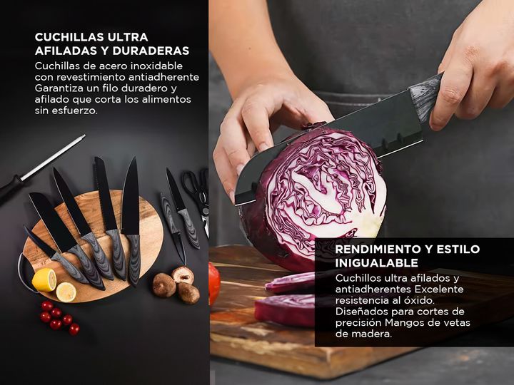 Gadnic by Cuk presenta el nuevo set de 15 piezas cuchillos de cocina: Ultra afilados: Las hojas de los cuchillos están diseñadas para mantener un filo excepcionalmente afilado para un corte preciso. Hojas antiadherentes: La capa antiadherente de las hojas evita que los alimentos se peguen, facilitan...