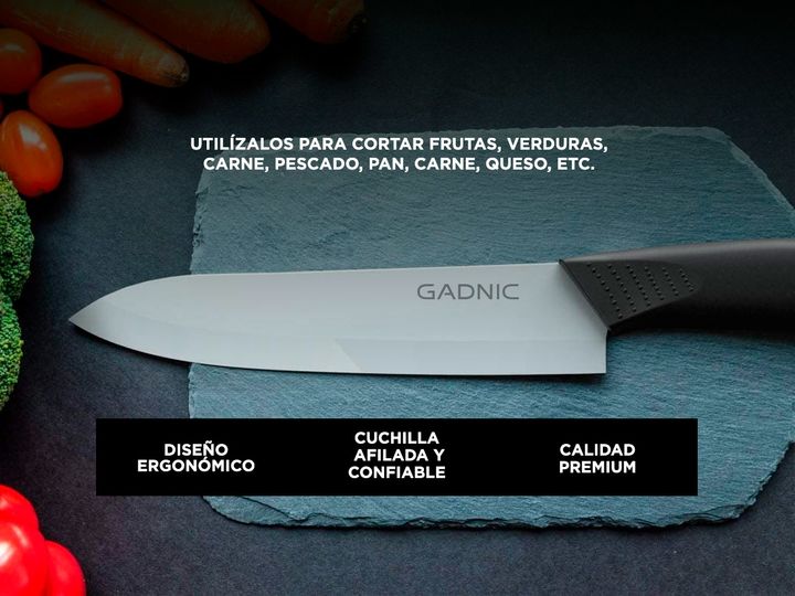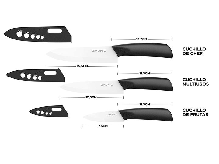 ¡Nuevo Set de Cuchillos Gadnic! Juego completo: El juego de cuchillos Gadnic contiene 3 cuchillos de cocina de diferentes tamaños, cada uno con la funda del cuchillo. Calidad premium: nuestro cuchillo está hecho con polvo de óxido de circonio de alta calidad para brindarle una cuchilla afilada y con...