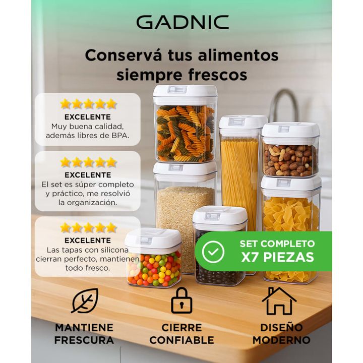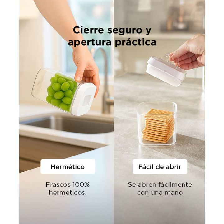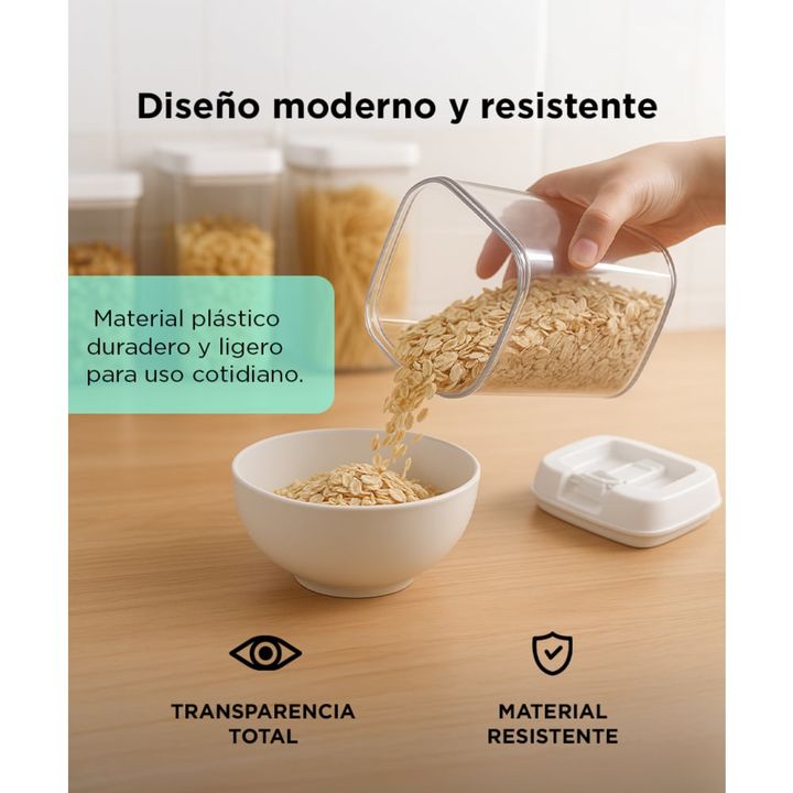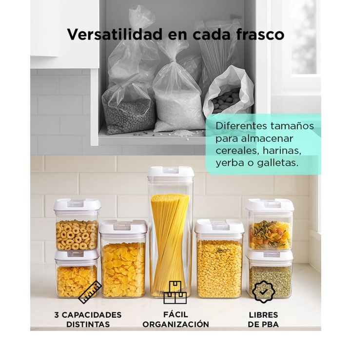 ¡Organiza tu cocina con estilo y practicidad con nuestro juego de 7 contenedores sellados de cocina! Cada tarro viene con una tapa hermética que garantiza la frescura y la calidad de tus alimentos secos por más tiempo. Fabricados con materiales de alta calidad y libres de BPA, estos contenedores son...