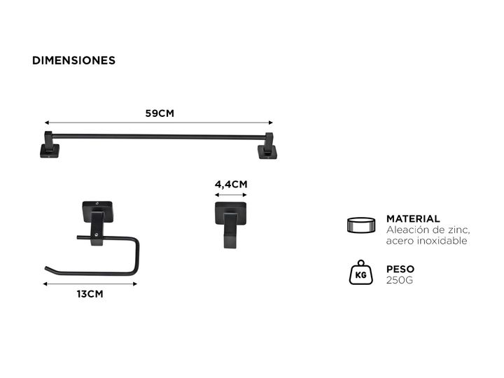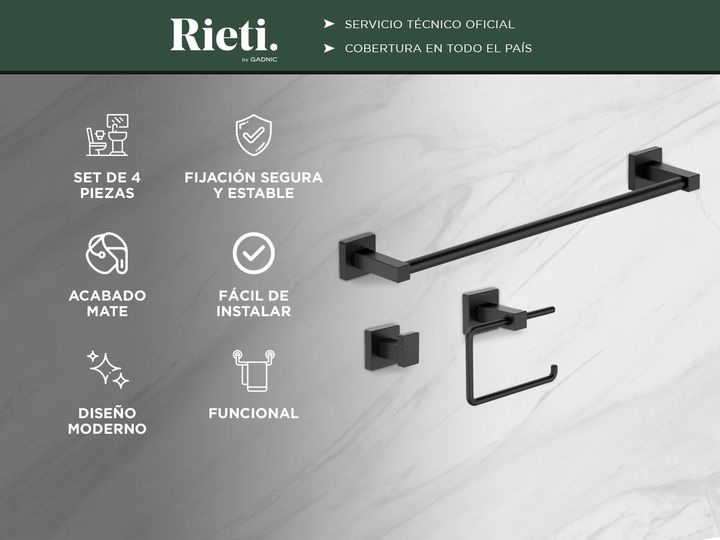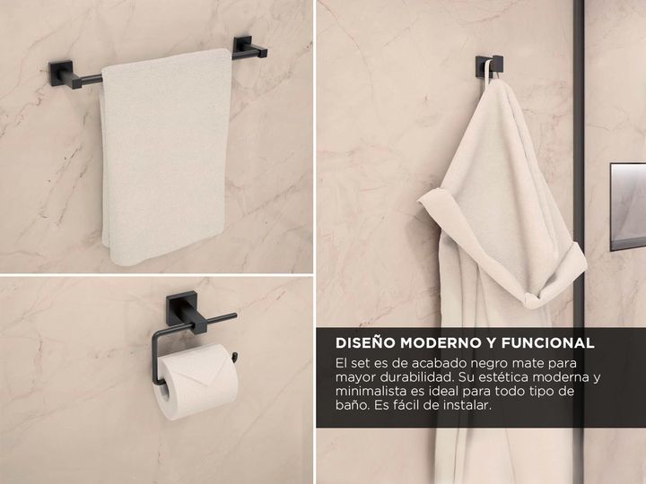 Gadnic presenta el nuevo set de baño de color negro matte Descubra el equilibrio perfecto entre funcionalidad y estilo con nuestro set de baño matte de 4 piezas. Diseñado para añadir un toque de elegancia moderna a su baño, este conjunto incluye todo lo que necesita para mantener su espacio organiza...