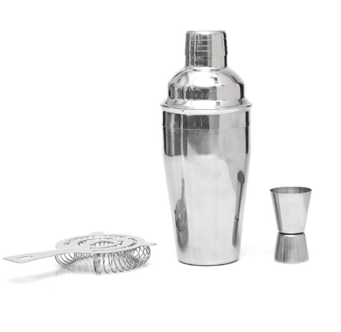 Set de Cocteleria, realizado en acero inoxidable. Empaque: Caja Peso: 215 g Dimensiones -Altura: 2.5 cm -Longitud: 5.8 cm -Ancho: 8.3 cm Garantía de 3 meses por falla de fábrica.