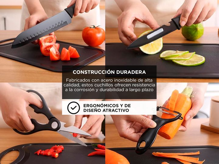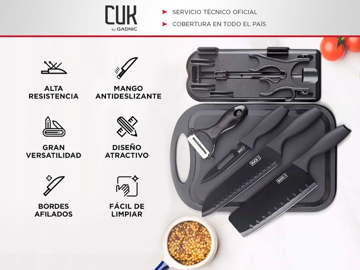Gadnic by Cuk presenta el nuevo set de 7 piezas cuchillos para cocina: Construcción Duradera: Fabricados con acero inoxidable de alta calidad, estos cuchillos ofrecen resistencia a la corrosión y durabilidad a largo plazo. Versatilidad: El juego incluye una variedad de cuchillos para satisfacer dife...