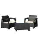 Disfrutá de tu patio o jardín con el Set de Muebles Exterior Voss 2000 Roma Set 1, ideal para crear un espacio cómodo y moderno al aire libre. Su diseño en color grafito y material PVC símil ratán aporta estilo y resistencia frente al uso diario. Incluye mesa y sillón de 1 cuerpo con medidas práctic...