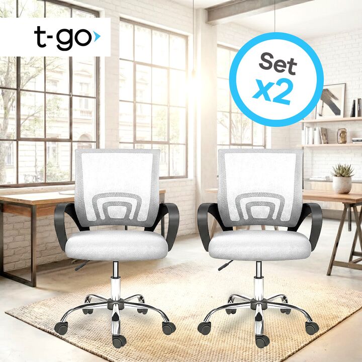 Combo x2 Sillas de Oficina T-GO: Confort, Diseño Mesh y Ergonomía *El Pack incluye: 2 Sillas completas (mismo modelo y color). *Estructura: Base metálica reforzada con terminaciones en PVC de alta durabilidad. *Tapizado: Tela Mesh respirable de alta resistencia y muy fácil limpieza. *Regulación de a...