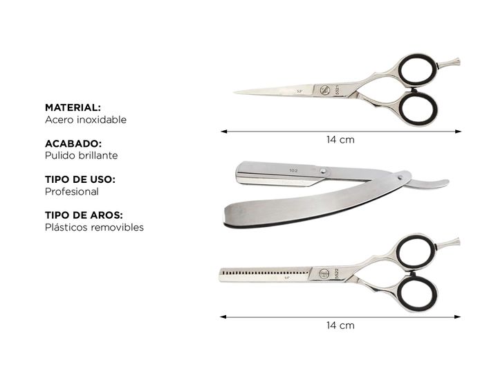 ¡Nuevo set completo tijeras Gadnic! El nuevo set profesional de tijeras de acero inoxidable es ideal para peluquerías y barberías. Construido en acero inoxidable te permitirá realizar cortes con precisión y profesionalidad. Aleación de cobalto y agarre seguro: Con terminación de pulido brillante, y ...