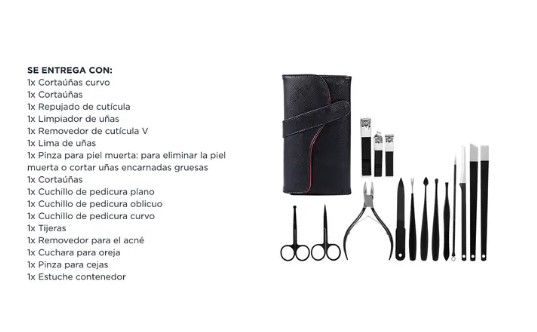 ¡Nuevo set de 15 piezas para manicura, pedicura y cuidado facial by Gadnic! Acero inoxidable y cuchillas afiladas: Construido en material de primera calidad y resistente, con cuchillas afiladas Apto profesional y uso hogareño: Las piezas son aptas para uso personal o en salón. El estuche contiene 15...