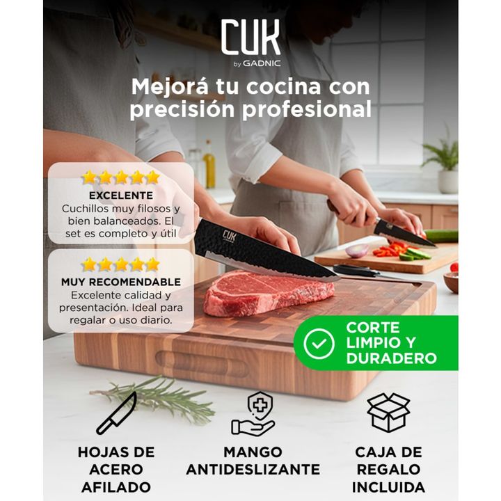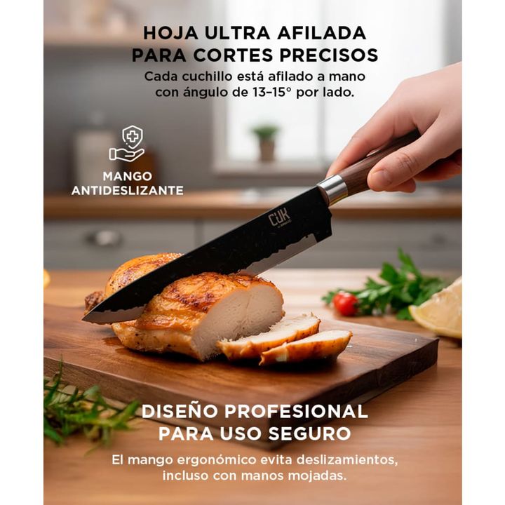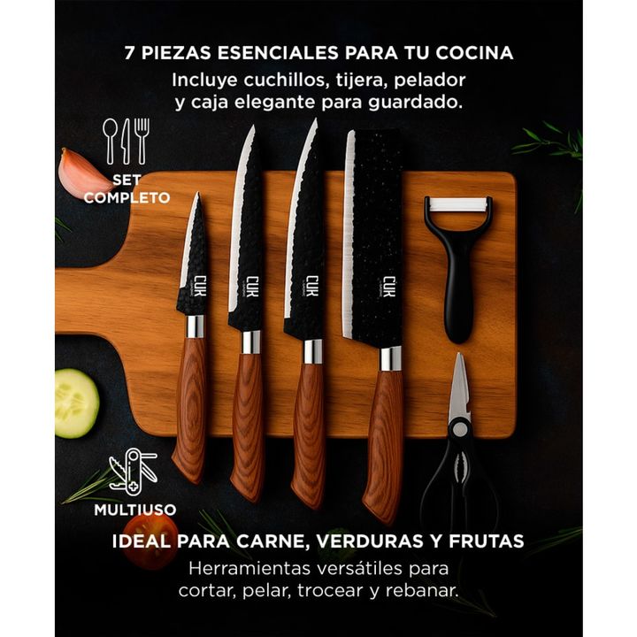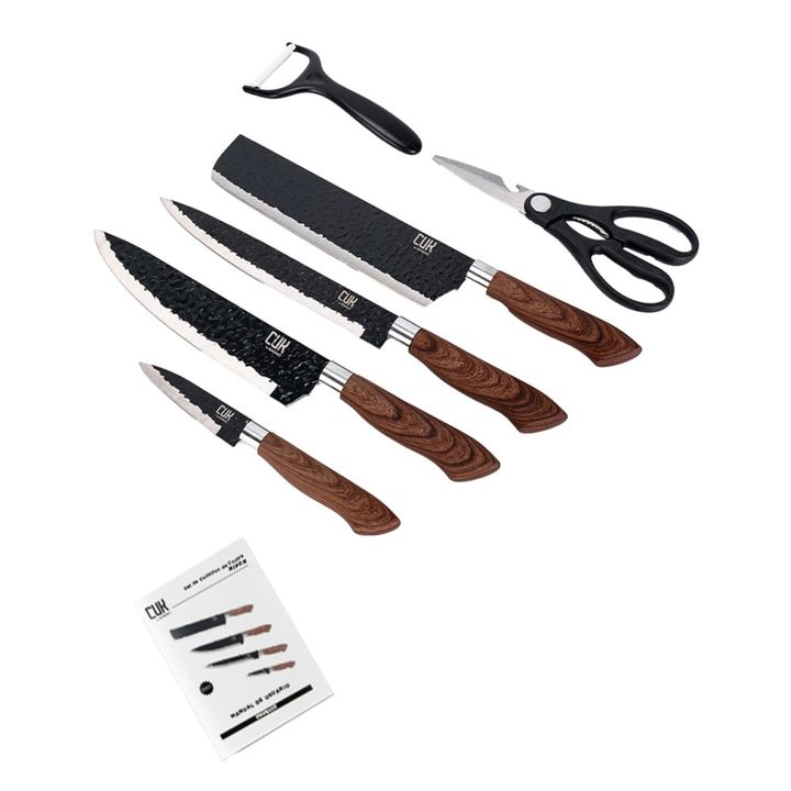 ¡Nuevo Set de Herramientas de Cocina de Acero con Mango Antideslizante! Juego de cuchillos todo en uno incluye cuchillo de Chef de 8 , cuchilla pequeña de 8, cuchillo de tallado de 8 , cuchillo de pelar de 3,5, tijeras y pelador Extremadamente afilada: Cada hoja de cuchillo está hecha de acero forja...