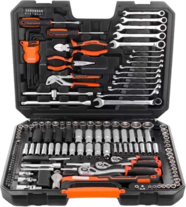 SET HERRAMIENTAS JB152 152 PIEZAS HAMILTON CONTIENE 152 PIEZAS Encastre 1/4: # 1 Llave crique encastre 1/4 # 8 Bocallaves largas encastre 1/4 : 6,7,8,9,10,11,12,13 mm. # 8 Bocallaves Hexagonales encastre 1/4: 6,7,8,9,10,11,12,13 mm # 21 Puntas encastre 1/4 # Torx: T10, T15, T20, T25, T27, T30, T40 #...