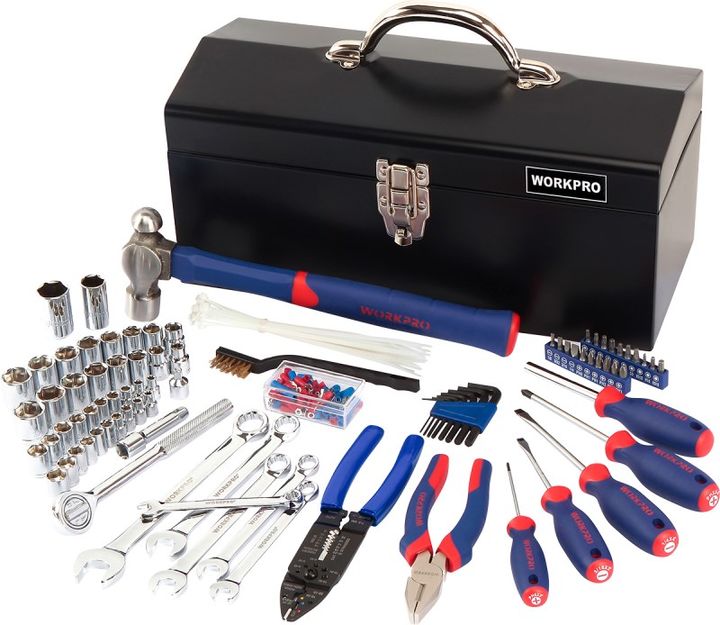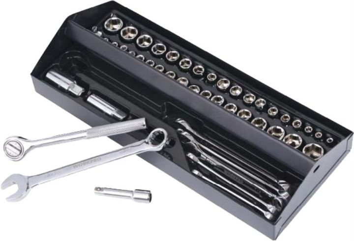 JUEGO HERRAMIENTAS MECANICAS 160 PIEZASW009027 WORKPRO # 1 Mango crique encastre de 3/8 # 10 Bocallaves metricas encastre de 1/4: 4, 5, 6, 7, 8, 9, 10, 11, 12, 13mm # 10 Bocallaves pulgadas encastre de 1/4: 5/32, 3/16, 7/32, 1/4, 9/32, 5/16, 11/32, 3/8, 7/16, 1/2 # 8 Bocallaves metricas encastre de ...