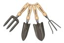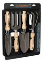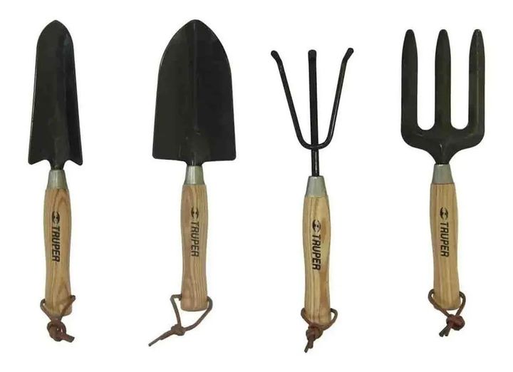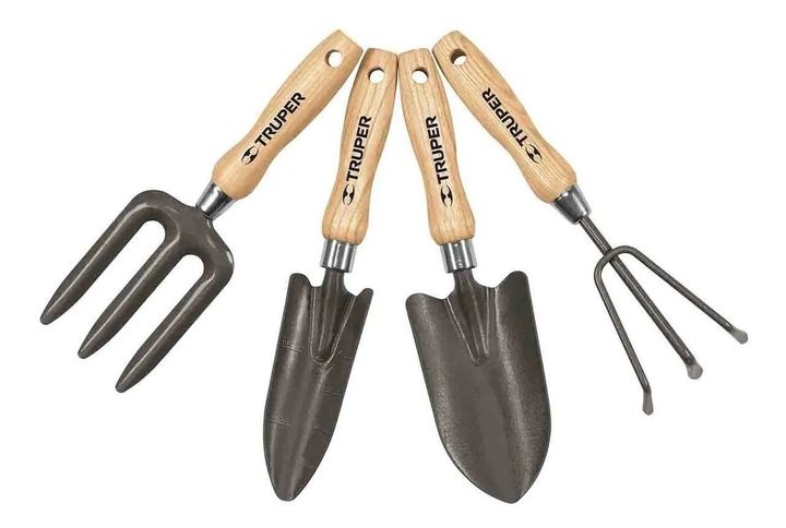 Características: - Fabricadas en acero la carbono - Mangos fabricados en madera de fresno - Casquillos metálicos que refuerzan el encabado Especificaciones - Longitud de mangos: 6 Pulgadas - Peso total: 970 g - Empaque: Caja - Origen: México Incluye1 Trasplantador,1 Cuchara,1 Bieldo de 3 dientes,1 C...