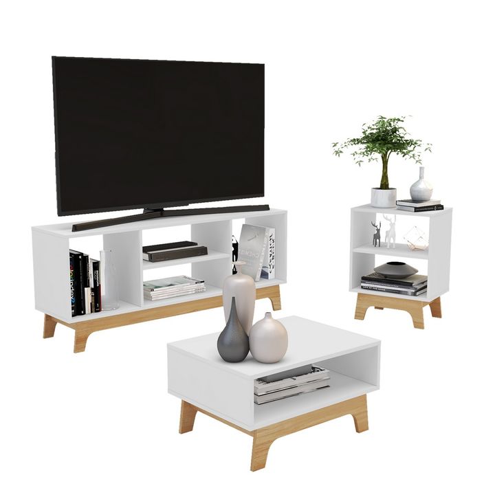 Juego de Living Completo Mix & Match - Blanco / Aveiro - Estilo Lincoln Compuesto por 3 piezas. Especificaciones técnicas: *Marca: Mix & Match *Código: 904041 *Color: Blanco / Aveiro *Material de la estructura: MDP / MDF 15mm *Acabado: BP (Melamina) / FF (Finish Foiled) *Repisas: 1 (en el rack), 1 (...