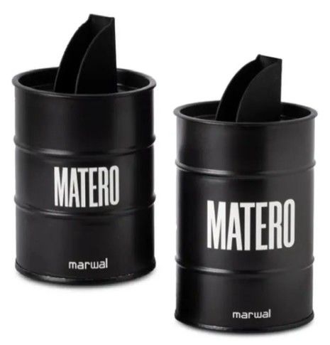 Set matero: mate acero inoxidable + 1 lata yerbera + 1 lata azucarera de diámetro de 9cm y su altura varia, una mide 10,5cm y la otra 13,5cm. Es practico y util para ordenar el horario del mate.