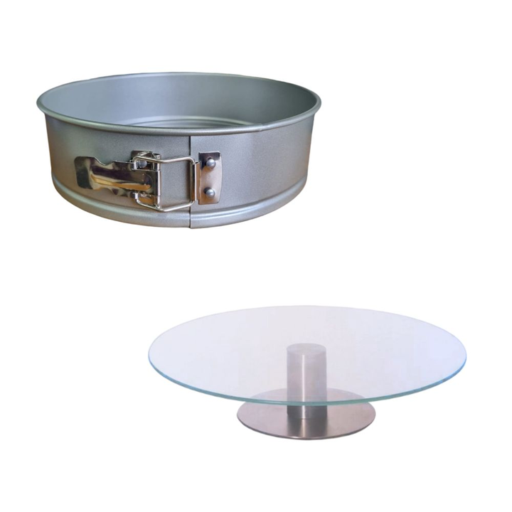 <p><em>El set incluye :</em><br /><br /><em>- 1 Molde tortera desmontable de 24cm de diametro:</em><br /><br /><em>Medidas del molde externas 27x7 cm / internas 24x7</em><br /><br /><em>- 1 Posa torta giratorio con base de metal : </em><br /><br /><em>Medidas del posa torta Alto 6.5 cm / Diametro 32...