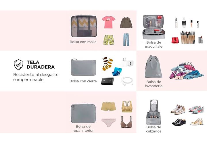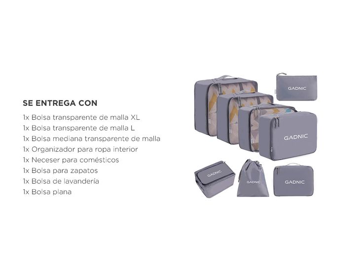 Acerca de Set Organizadores de Viajes Gadnic 8 Piezas Ropa Zapatos Neceser Nylon de Alta Calidad Mejorado: La suave tela de nylon protege tu ropa de arrugas y manchas. Duradera y densa, resistente al desgaste durante los viajes. Impermeable para proteger completamente tu ropa de derrames o filtracio...
