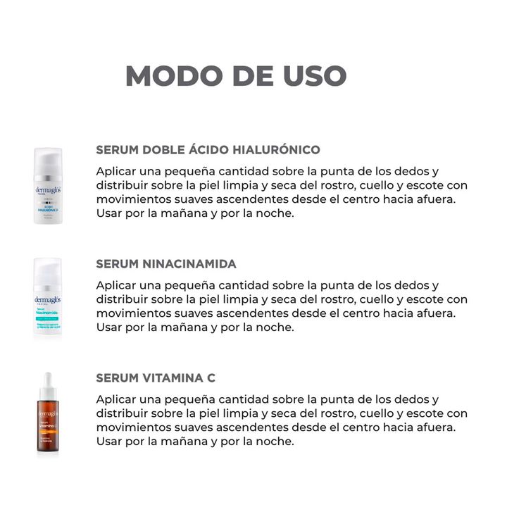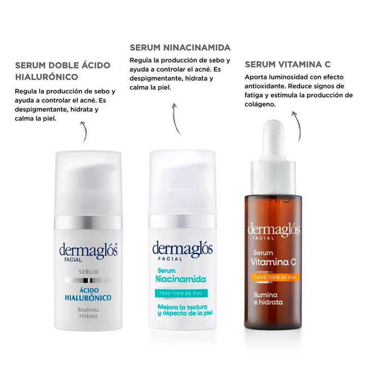 Componentes Dermaglos Serum Facial Doble Acido Hialuronico 30ml Código: 7793742007118 | SKU: 008113 x 1 uni Serum Facial Todo Tipo De Piel Niacinamida Dermaglos 30 ml Código: 7793742007125 | SKU: 008168 x 1 uni Serum Facial Todo Tipo De Piel Vitamina C Dermaglos 25 ml Código: 7793742107108 | SKU: 00...