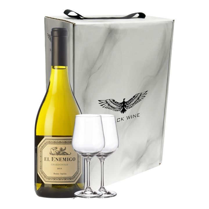Set Vino El Enemigo Chardonnay y 2 Copas Con Estuche