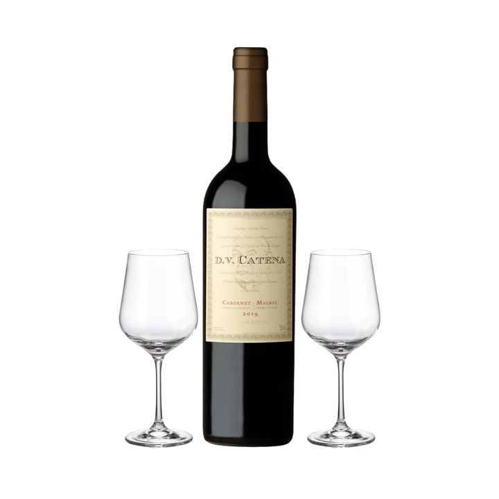 Set Vino Tinto DV Catena Cabernet Malbec y 2 copas y Con Estuche