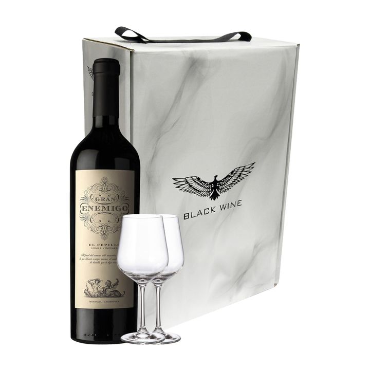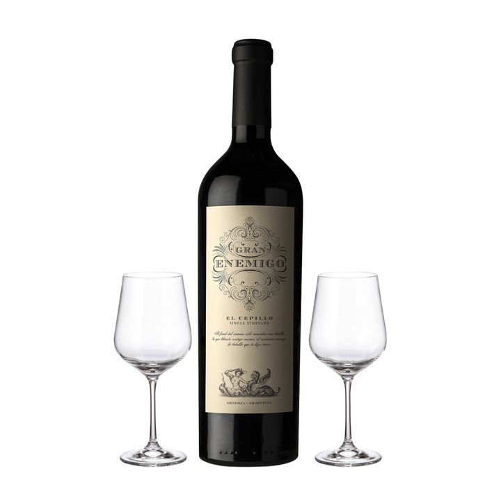 Set Vino Tinto Gran Enemigo Cabernet Franc Malbec y 2 Copas Con Estuche