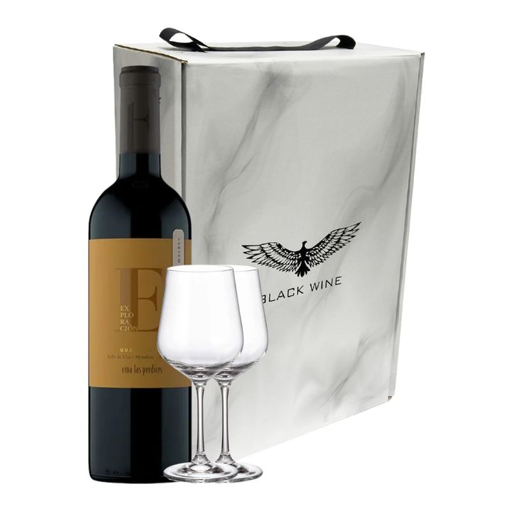 Set Vino Tinto Las Perdices Exploracion Malbec Gualtallary y 2 Copas Con Estuche
