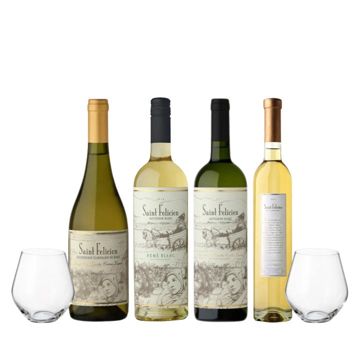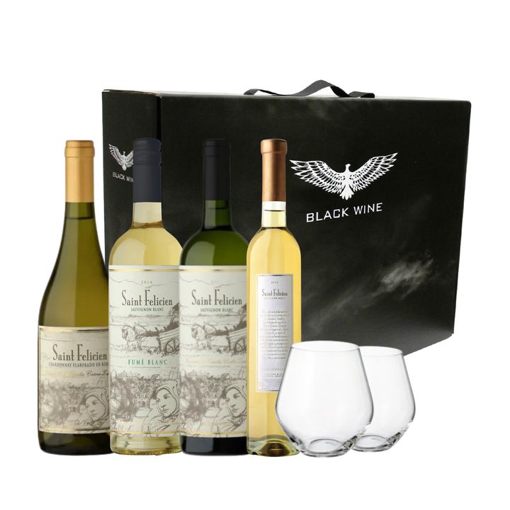 Set Vinos Blancos Saint Felicien Seleccion x 4 y 2 Copas Con Estuche