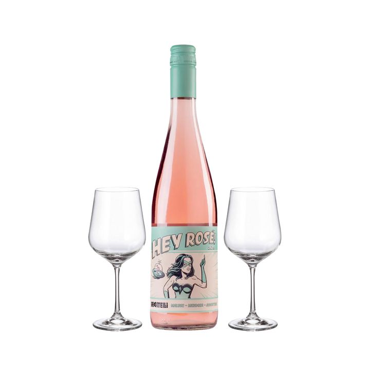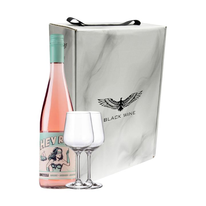 Set Vinos Rosados Hey Rose y 2 Copas Con Estuche