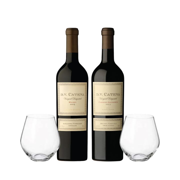 Set Vinos Tintos Catena Single Vineyards Seleccion x 2 y 2 Copas Con Estuche