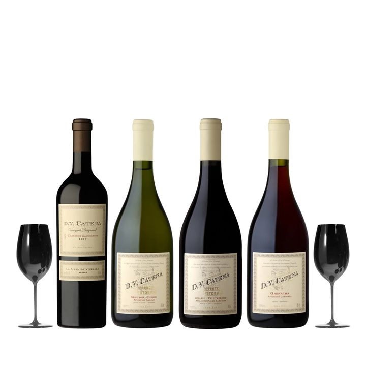 Set Vinos Tintos DV Catena Vineyard Designated Seleccion x 4 y 2 Copas Con Estuche